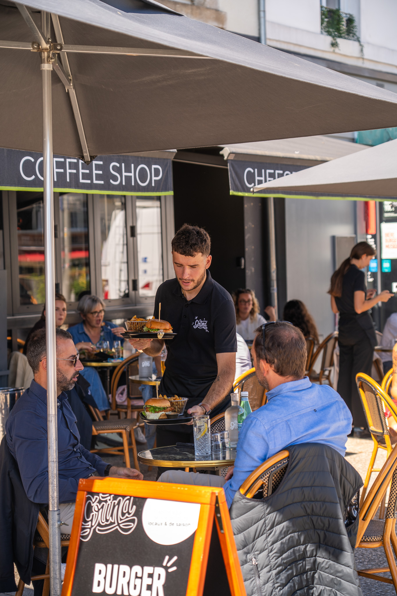 Et on a imaginé un lieu chaleureux, modulable, qui rassemble tous ceux qui aiment bien manger : burgers, café, sucré… Le GRIND, c’est tout ça à la fois.